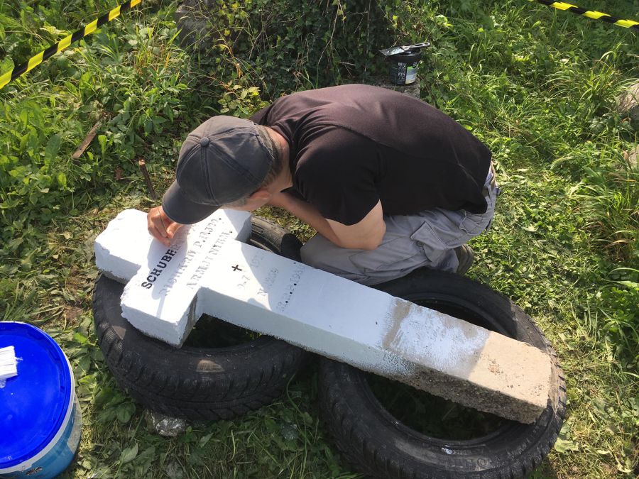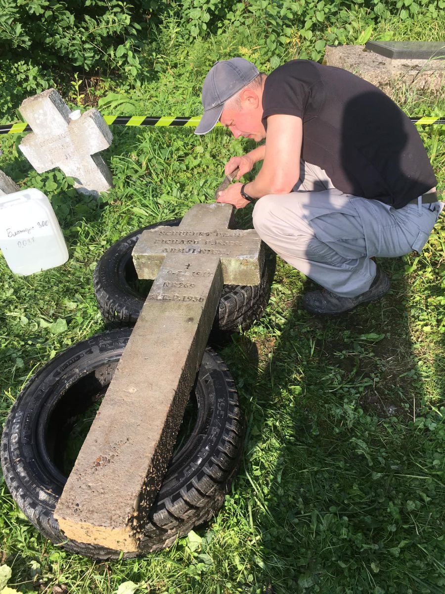 "Ми вирішили пофарбувати перший хрест, розробити алгоритм роботи, підібрати інструмент і матеріали, тому наш вибір зупинився, звісно, що на хресті німецького солдата Шуберта Пауля Річарда", — повідомив Олександр Коваль.