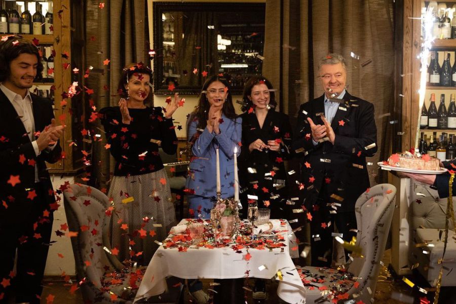 Марина Порошенко запросила чоловіка на білий танець. Іменинник не здогадувався, що музиканти, що ховаються за шторами — це "фемілі-бенд" Порошенків.