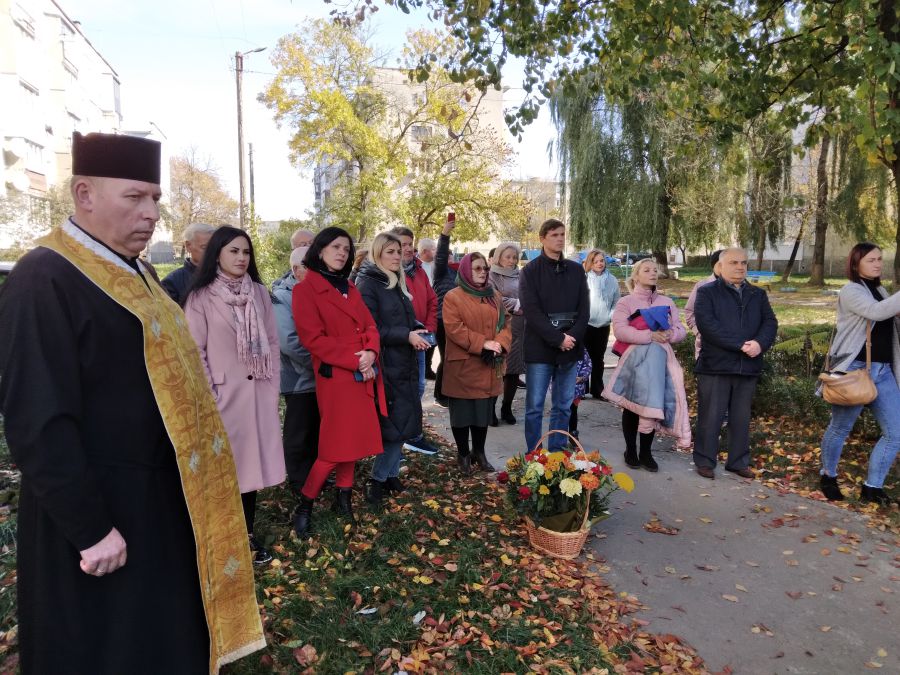 Обряд освячення меморіальної дошки провів декан Калуський УГКЦ, настоятель храму Кирила і Мефодія о. Степан Скібіцький.