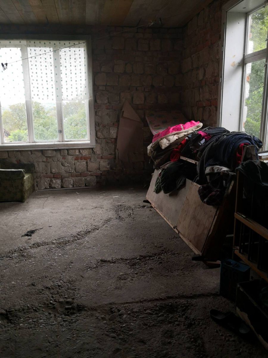 У будинку, де живе родина, є ще дві великих кімнати, де б діти змогли спати на окремих ліжечках, але в кімнатах бетонна підлога, дирявий дах та голі, не поштукатурені стіни.