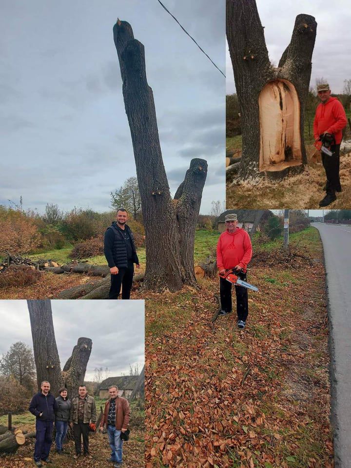 Ця історія передалася моїй свекрусі, згодом нам з чоловіком. Ще будучи молодими, ми запланували поставити на цьому місці капличку. Окрім дуба, там була посаджена дідусем ще липа. Ми дуб зрізали, дошки зараз сушимо, власне, для каплиці», — каже Світлана, власниця ділянки.