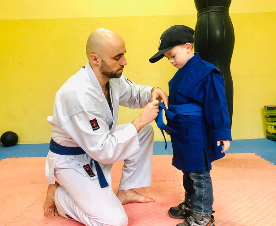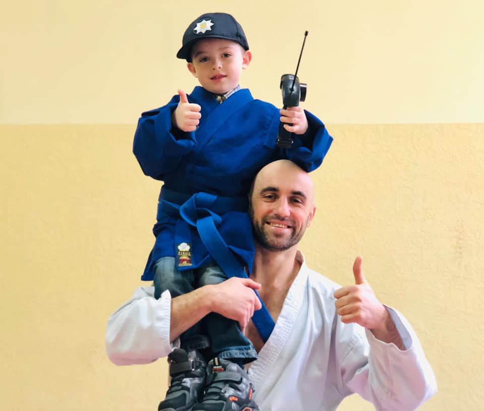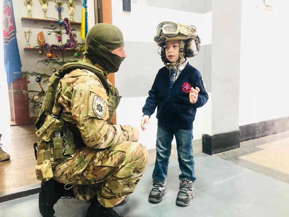 Спецпризначенці подарували хлопчику кімоно та навчали його прийомів самозахисту, разом боксували грушу. Крім того, Сашко приміряв захисний шолом та інше екіпірування поліцейських.