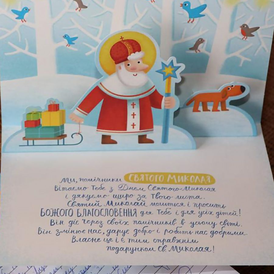 Цьогоріч в резиденцію надійшло понад 800 листів, в яких діти просили святого Миколая подарувати їм іграшки, книжки чи якісь інші побутові речі, а також принести подарунки їхнім рідним. Та поряд із матеріальним вони завжди, а то й першочергово, просять про те, чого неможливо придбати за жодні гроші: про здоров'я для своїх рідних, про злагоду й мир в Україні та про допомогу для наших воїнів.