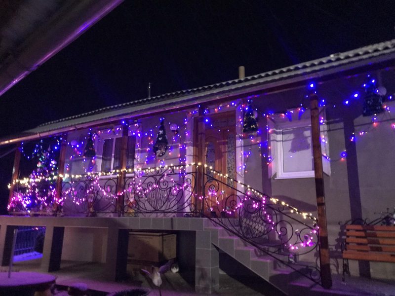 «Буває так, що почеплю повністю гірлянду, включаю в розетку — а вона не світить. Тоді я все повністю знімаю, шукаю, де порвалася, і йду паяти. Тоді нерви трохи беруть», — ділиться Володимир.
