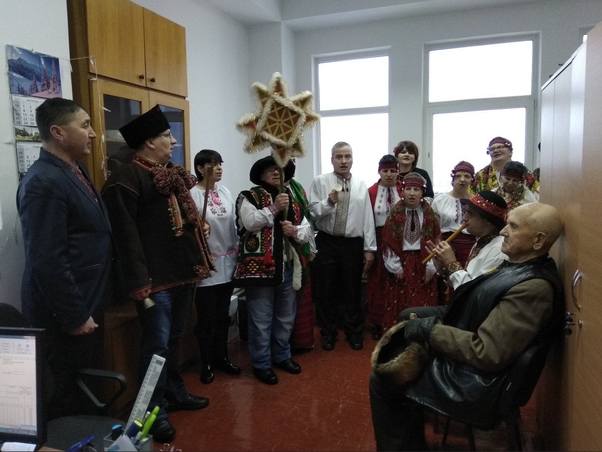 Також до колядників долучився і найстарший мешканець геріатричного пансіонату Олексій Дмитраш, якому незабаром виповниться 94 роки.