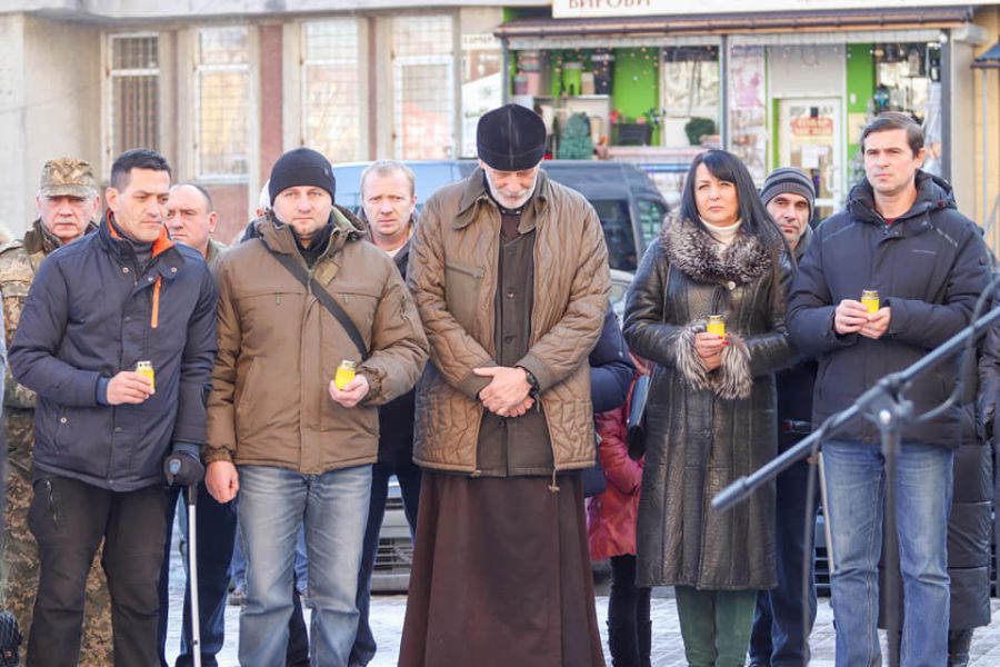 Присутні хвилиною мовчання вшанували пам'ять "кіборгів" та всіх, хто загинув, захищаючи Україну, інформують "Вікна" з посиланняна Калуську міську раду.