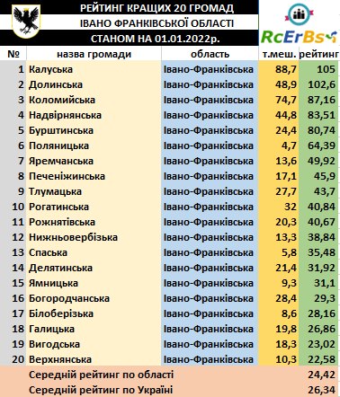 Станом на 1 січня минулого року Калуська громада була в цьому рейтингу п'ятою.