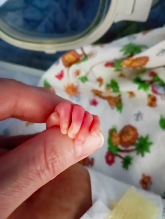 На світлинах — ручка і ніжка передчасно народженого малюка. Цілий кулачок менший за фалангу пальця дорослої людини. І в цих крихіток медична сестра має знайти вену, і не одну, а одразу дві-три, для цілодобового введення ліків, йдеться у повідомленні "Фундації доброчинців".