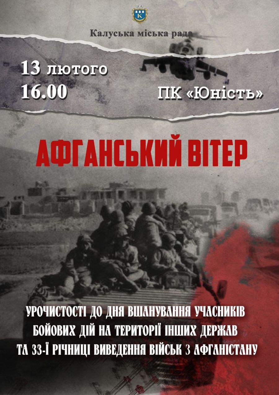 16.00 — Концертна програма «Афганський вітер» — ПК «Юність»