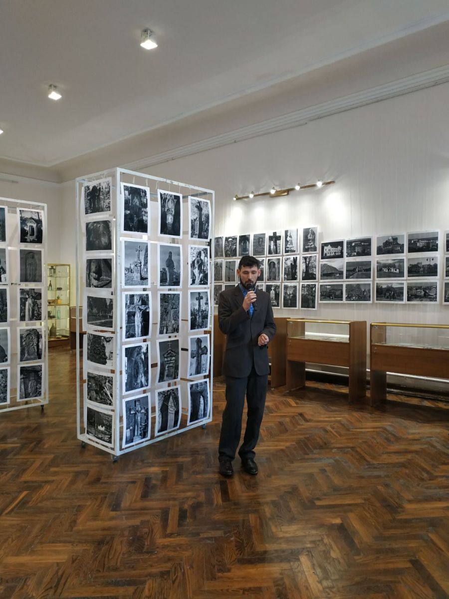 Василь Фіцак ознайомив численних гостей та поціновувачів з експозицією. Він розповів про роль та значення сакральних об`єктів зображених на світлинах. Особливо надгробків, що є цінними як монументальні пам’ятки. Між ними зустрічаються роботи відомих скульпторів минулого — Маріана Антоняка, Генріха Пер’є, Шінзера, Кордела, Петруса, калуського скульптора Хоміцького та інших.