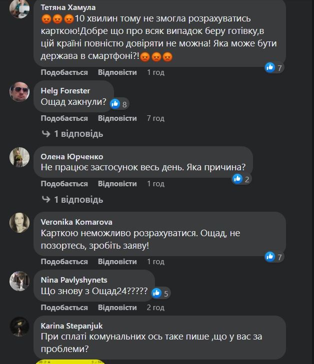 Про збої у роботі «ПриватБанку» та «Ощадбанку» користувачі цих установ повідомляють у соцмережах. Зокрема, скаржаться на те, що не працюють їхні застосунки, неможливість розрахуватися карткою та інші невдалі операції, інформує "Громадське".