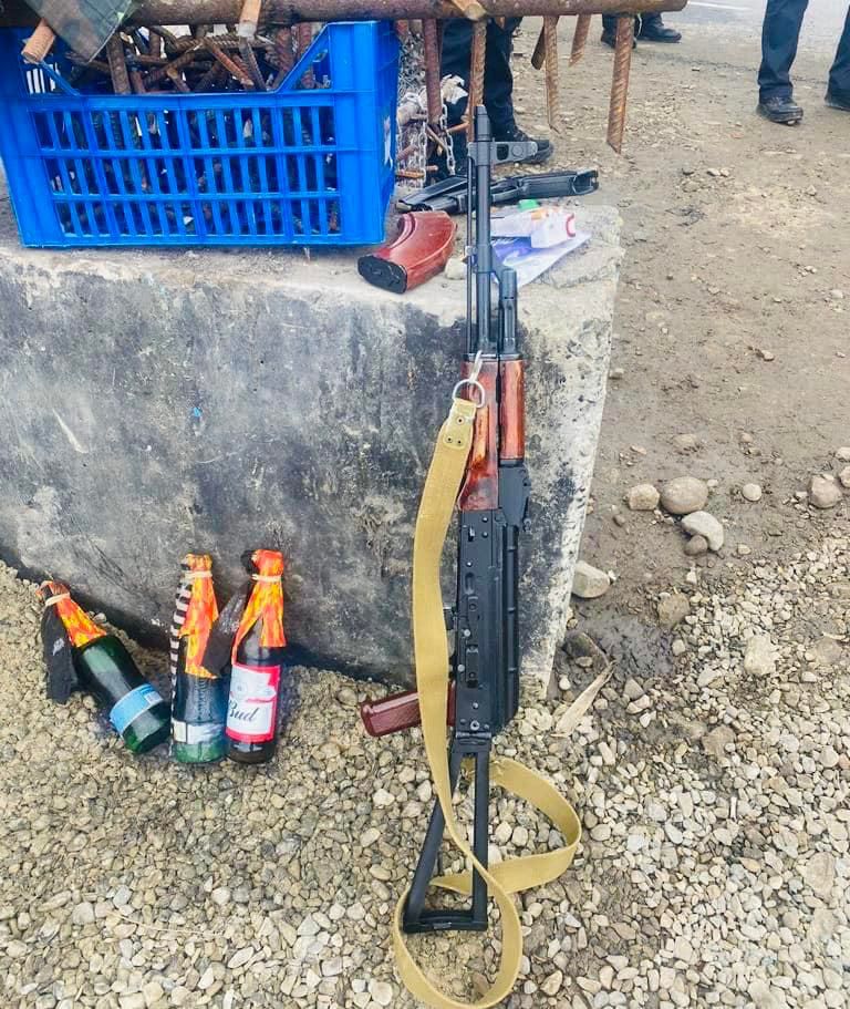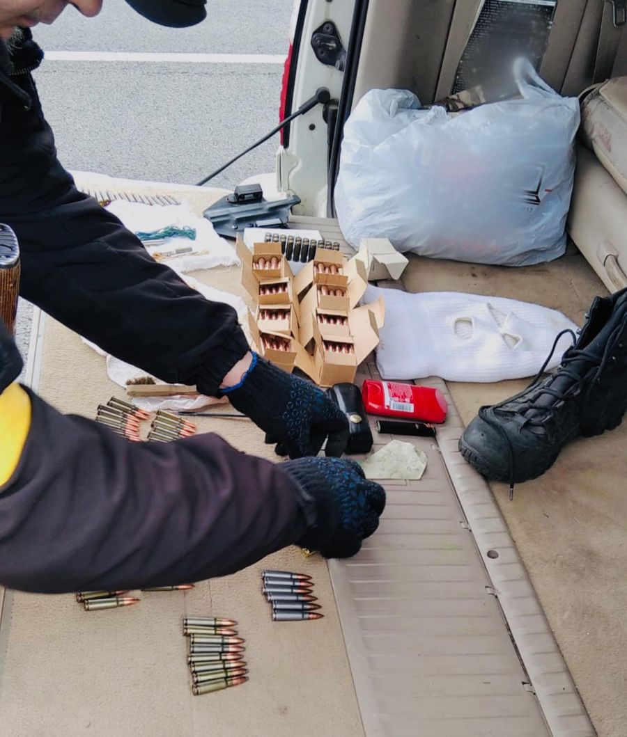 Під час перевірки в салоні та в багажному відділенні транспортного засобу правоохоронці виявили арсенал зброї, а саме: три одиниці вогнепальної зброї, понад 2000 набоїв різного калібру, ряд вибухових речовин та пристроїв, а також комплектуючі частини до різних моделей зброї.