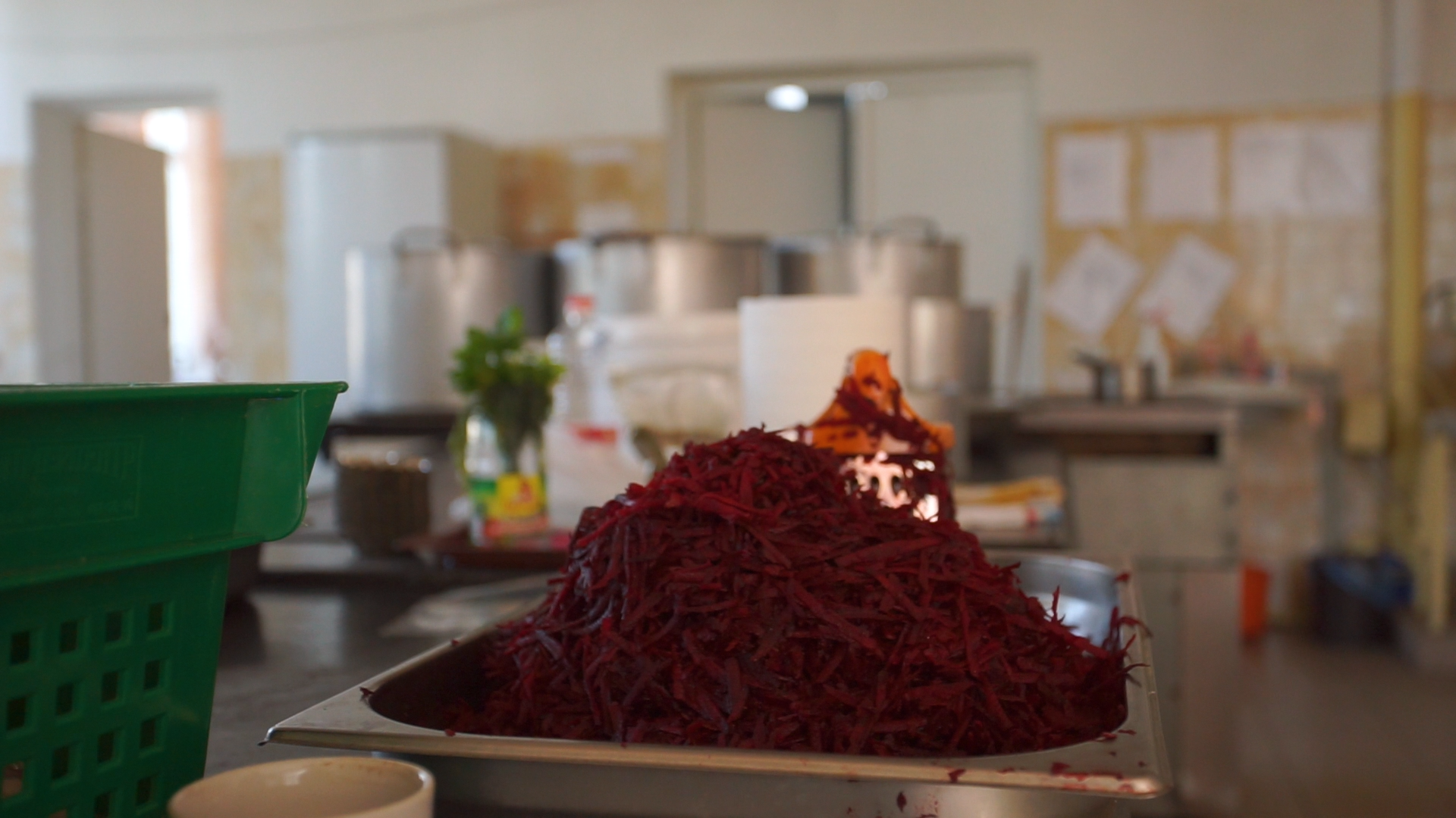 Кухар Владислав Овчинюк показав процес вакуумації. Розповідає, що борщ готують традиційним методом, правда, роблять його дещо густішим. Свіжоприготовлену страву наливають гарячою у вакуумний прилад. Без контакту з повітрям борщ може бути придатним до вживання впродовж 3-х або 4-х тижнів. На фронті борщ можна одразу вживати готовим — достатньо лише долити гарячої води.