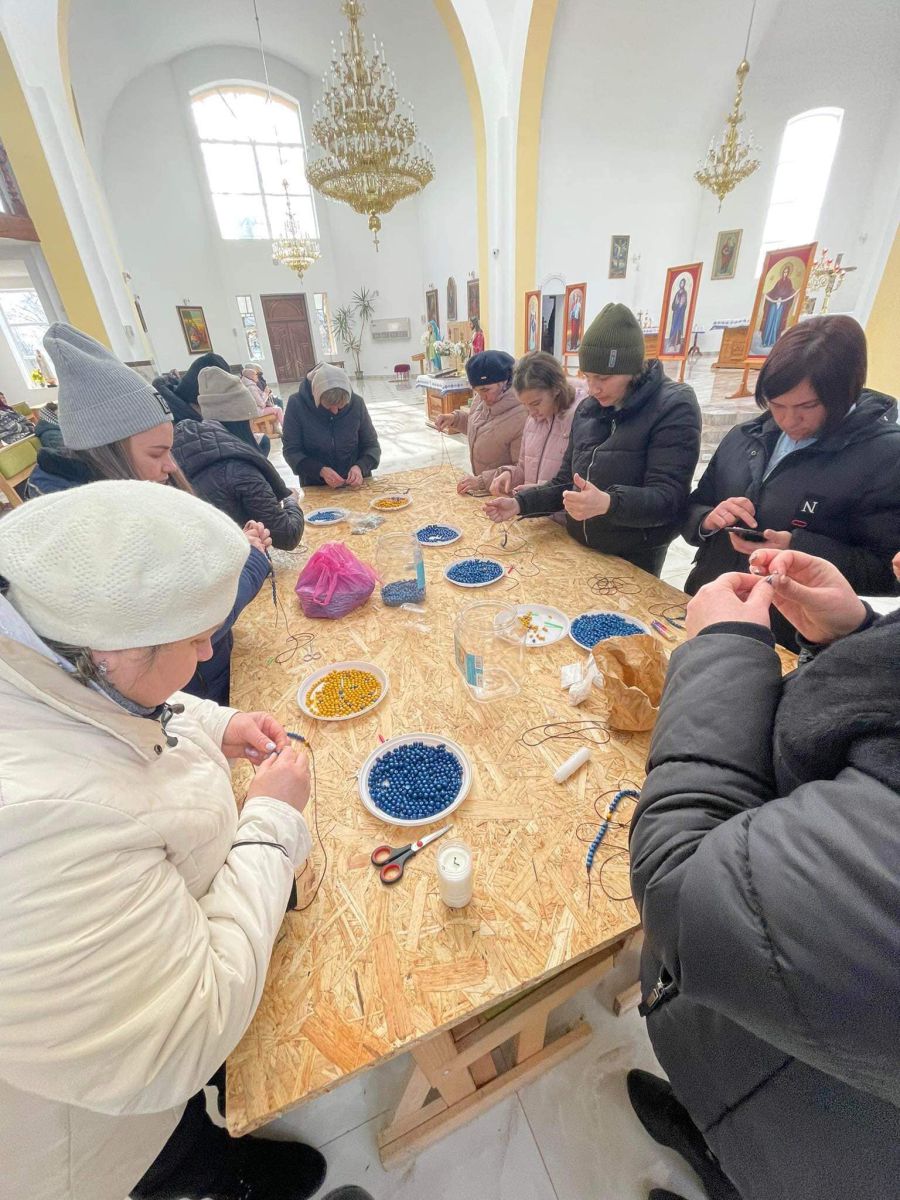 Також щодня дівчата, жінки та діти, молячись, виготовляють синьо-жовті та червоно-чорні вервички для військових. Уже приблизно 500 передали на передову, а загалом їх кількість наближається до тисячі. Також мешканці Голиня, серед яких і переселенці, плетуть маскувальні сітки, основу для яких отримали від українців з Польщі.