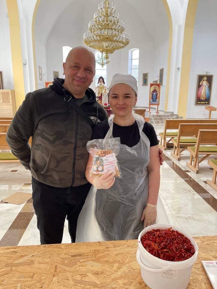 Згодом майже 20 голинянок шість годин у церкві важили, змішували посушені складники, пакували у вакуум, який зберігатиме їхню поживність, а також дегустували свій "козацький борщ". Вийшло 312 пакетиків по 260 грамів кожен — це на 3500 порцій. Близько 20 упаковок вже забрали на передову.