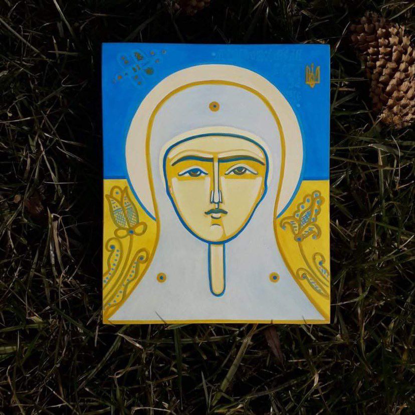 У коментарі "Вікнам" мисткиня розповіла, що у перші дні війни під впливом сумних подій вирішила намалювати Матір Божу у синьо-жовтих тонах як символ захисту і перемоги України.