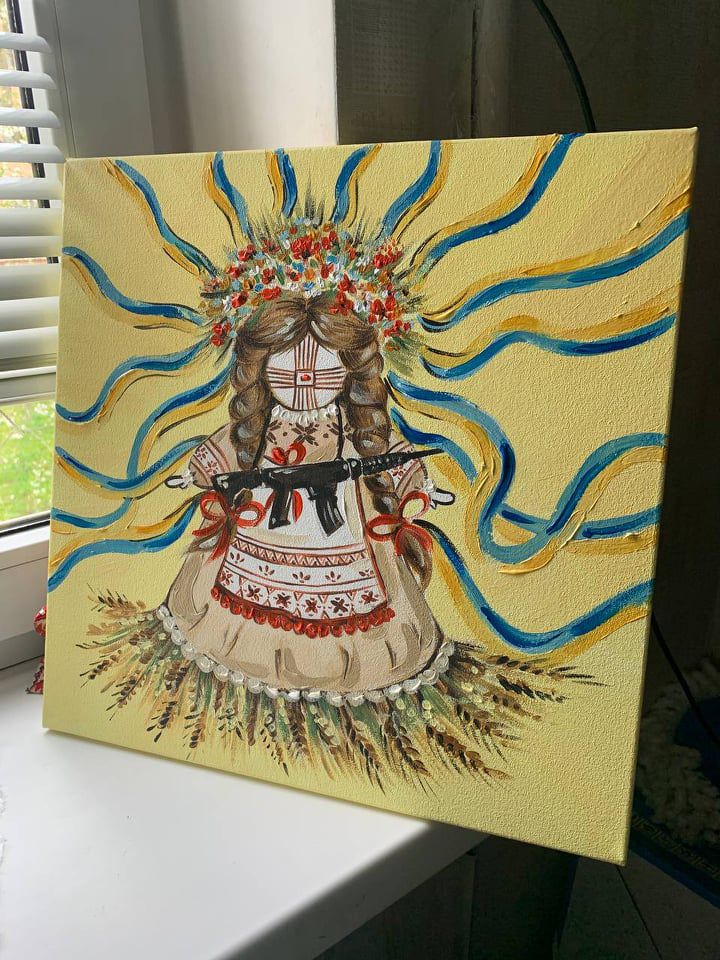 Інша картина Ксенії Дутки — лялька-мотанка, яка вважається сакральним символом української духовності. Ксенія зобразила ляльку у вигляді захисниці із зброєю в руках.