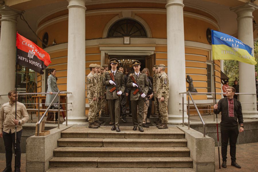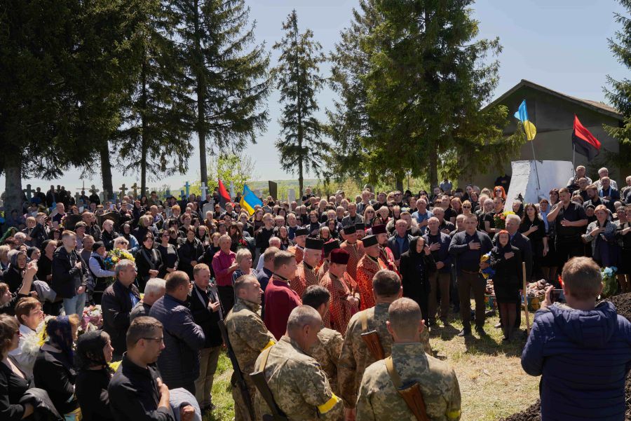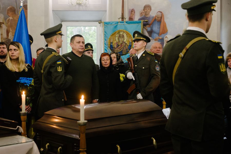 У церемонії прощання взяли участь понад 200 осіб, серед яких учасники російсько-української війни, військовослужбовці сил територіальної оборони ЗСУ, студенти та викладачі КНУ імені Тараса Шевченка, представники громадських об’єднань, українське духовенство. За участі Військового інституту КНУ імені Тараса Шевченка був виконаний сучасний український військовий поховальний ритуал.