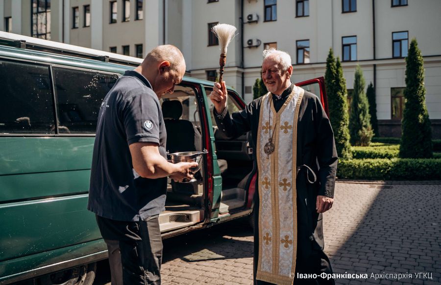 «Дякуємо Романишину Віктору, який за свої кошти придбав даний автомобіль, Івахнюку Віктору за ремонтні роботи та парафіянам, за кошти яких робилося відповідне технічне облаштування автомобіля і його оздоба. Слава Богу і Слава Україні!», — звернувся із словами вдячності протоієрей о. Анатолій Козак.