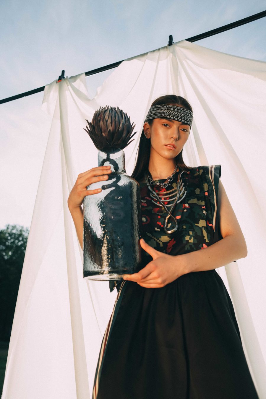 «Центральним елементом літньої колекції стала авторська інтерпретація орнаменту старовинних домотканих килимів Буковини, який ми перевели в пікселі та перенесли на сарафани й топи. Тлом для яскравого принту ми обрали базові чорний і білий кольори»,– коментує засновниця бренда Любов Чернікова з Івано-Франківська.