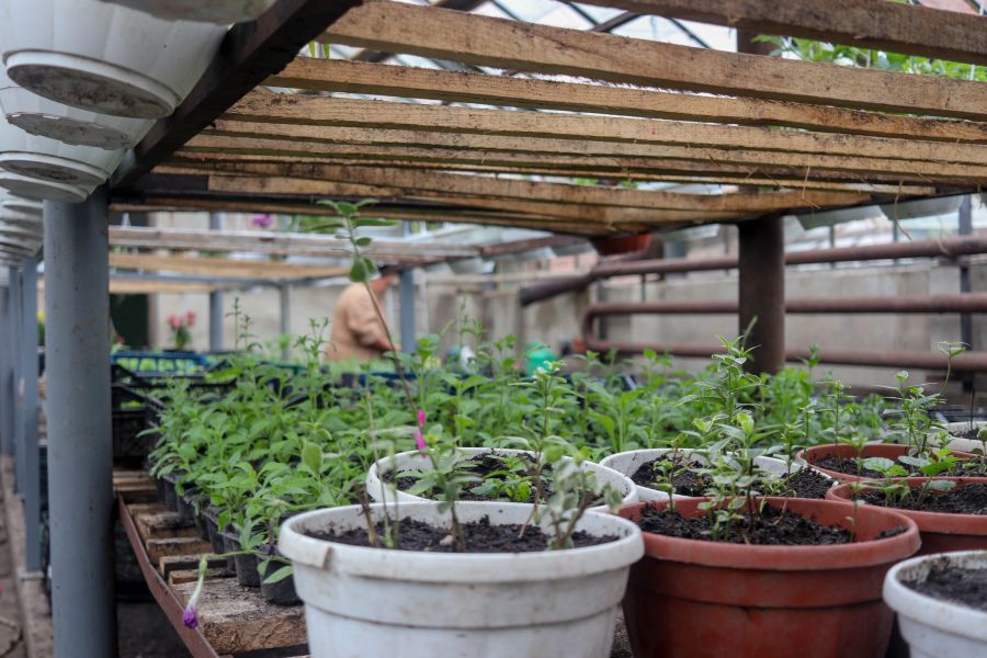 Зараз у теплиці для розмноження є маточники квітучих рослин: хризантеми, єгипетська зірка, хлорофітум тощо, а також розсада для підсадки квітів. Адже, на жаль, є непоодинокі випадки, коли рослини з клумб "зникають".