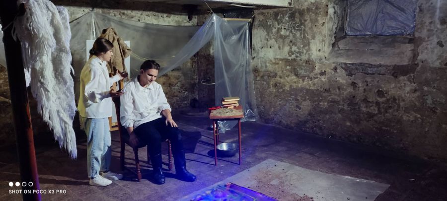 Героїв зіграли актори молодіжного театру "Silentium" Ілона Яріш (Марко Вовчок) та Андрій Суслик (Тарас Шевченко).