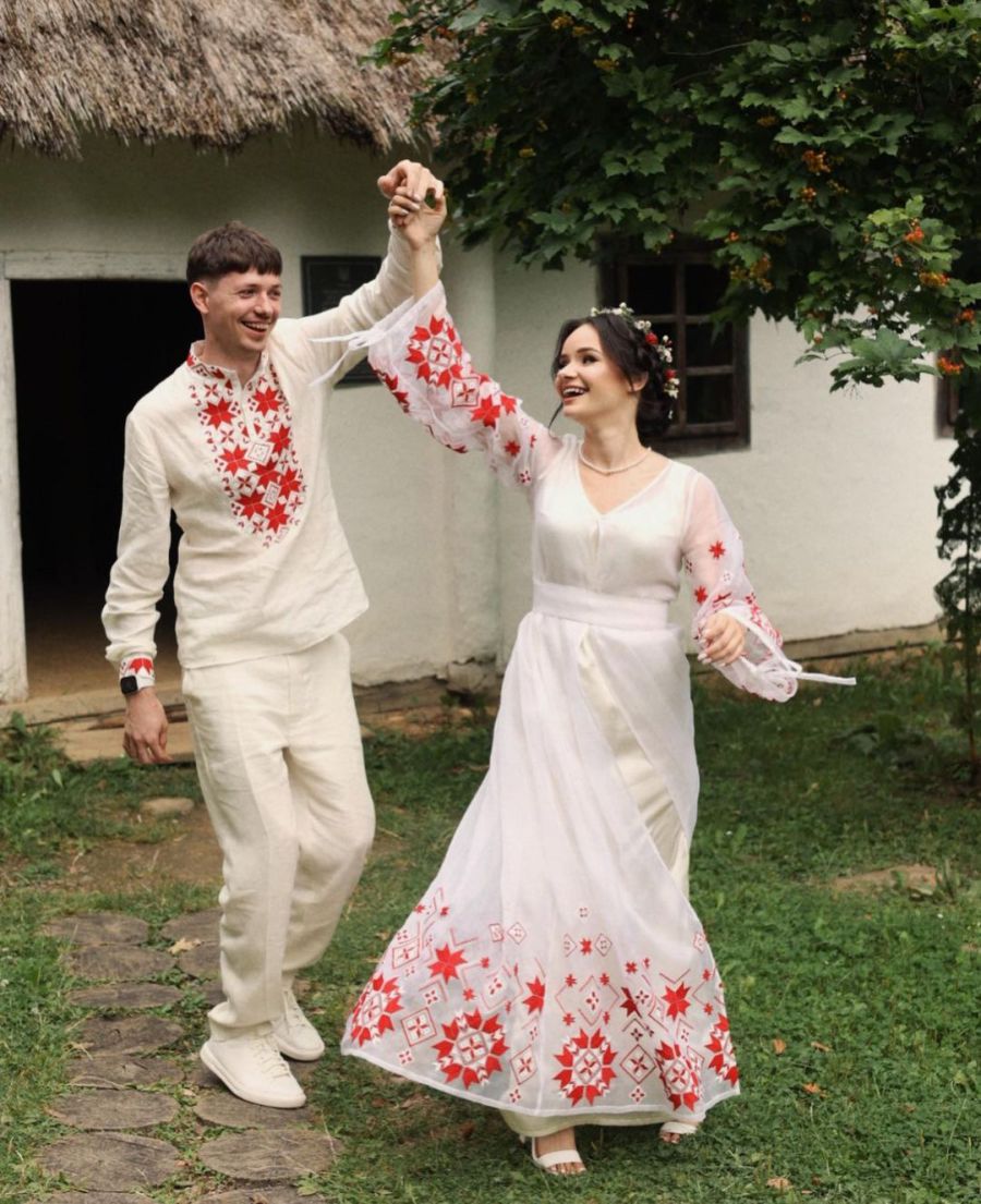 Вінчання відбулося з хвилиною мовчання за загиблими захисниками України, без алкоголю, танців і в патріотичному та національному стилі.
