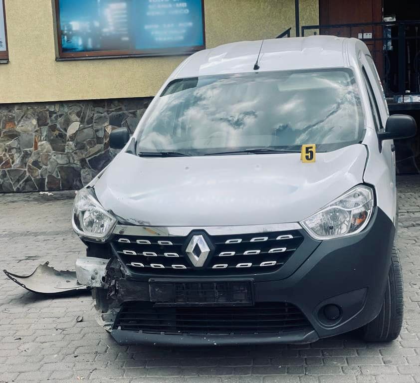 Від удару автобус з’їхав праворуч на стоянку будівельного магазину, де він зіткнувся з припаркованою вантажівкою та транспортним засобом Renault.