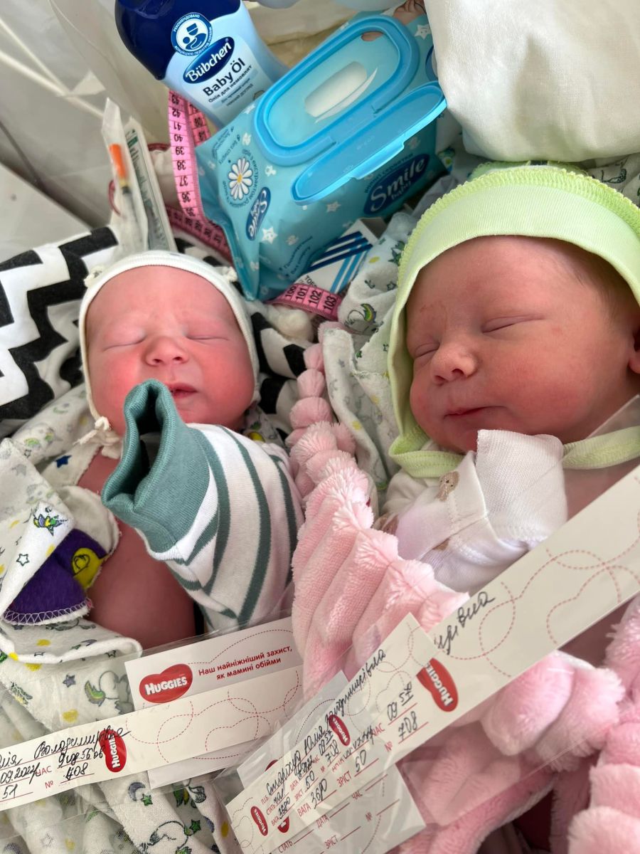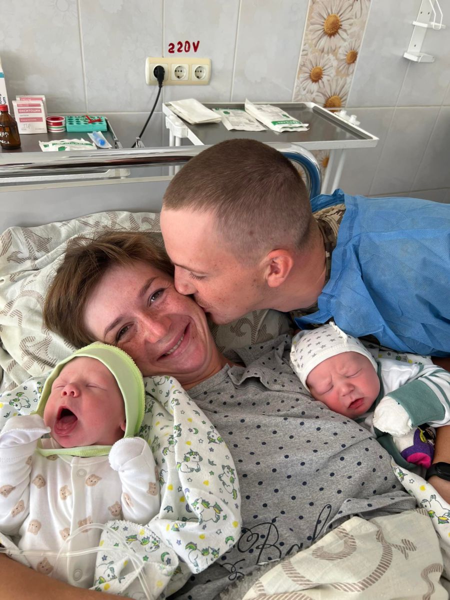 "Щирі вітанні військовому 128 ОГШБр ЗСУ Старосуду Миколі та Юлії з Студінки з народженням двійнят — Сергія 3400 г та Євгена 3680 г", — пишуть калуські медики.