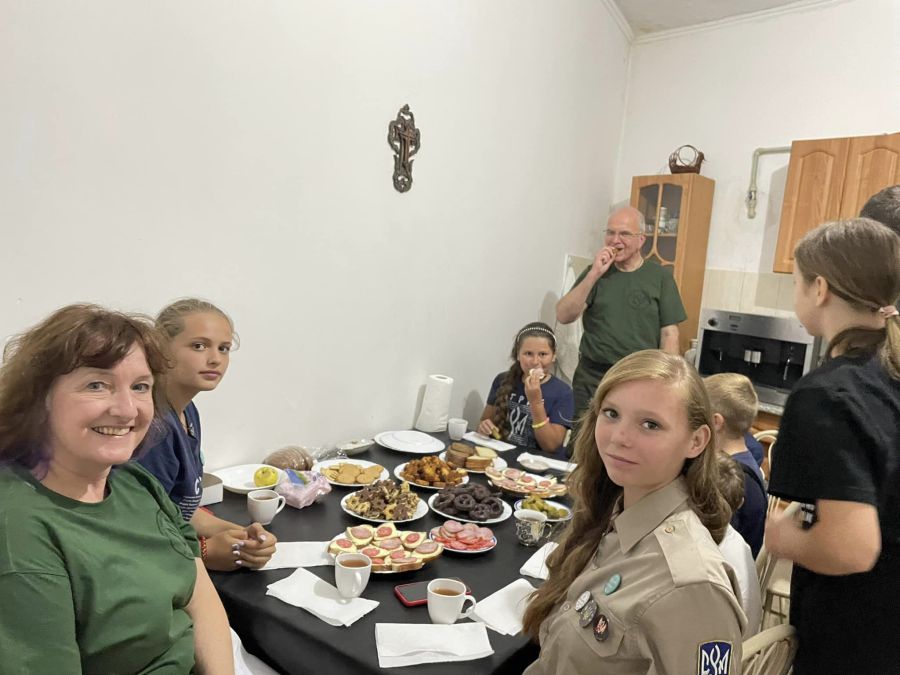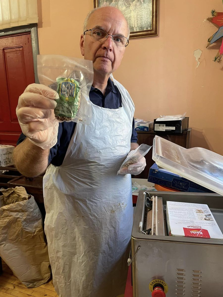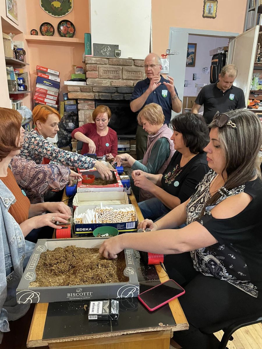 Також голова Світової Управи СУМу ознайомився із процесом приготування цигарок "Домашні бандерівські", які калушанки крутять для бійців ЗСУ. Своїми руками волонтерки накрутили вже 900 тисяч цигарок.