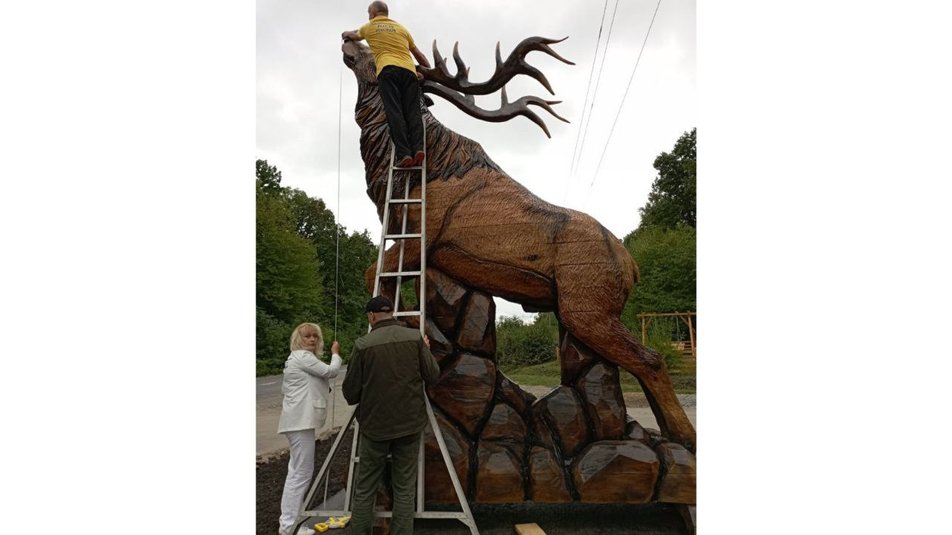 Скульптура важить приблизно 6 тонн та заввишки 4 м 77 см. Стоятиме фігура оленя у Сокирянському лісгоспі, розповів Суспільному Олег Пилип’юк.