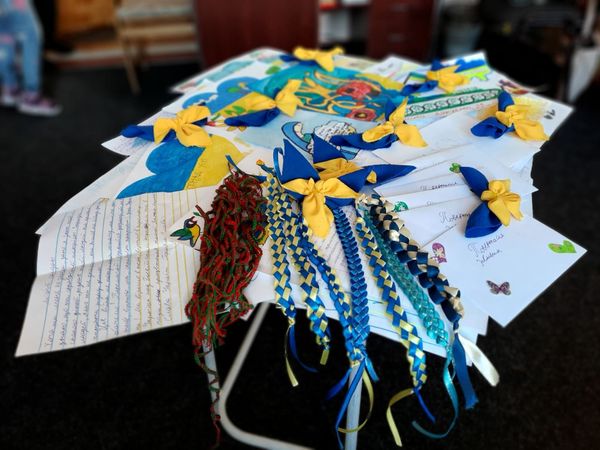Діти з батьками активно долучились до акції, написавши листи, в яких висловили свої щирі слова підтримки та вдячності воїнам. Наймолодші малювали малюнки, сповнені віри і надії на перемогу. Разом з батьками діти сплели браслети, вклавши в них все тепло і любов, інформують «Вікна» з посиланням на Калуський ліцей №5.