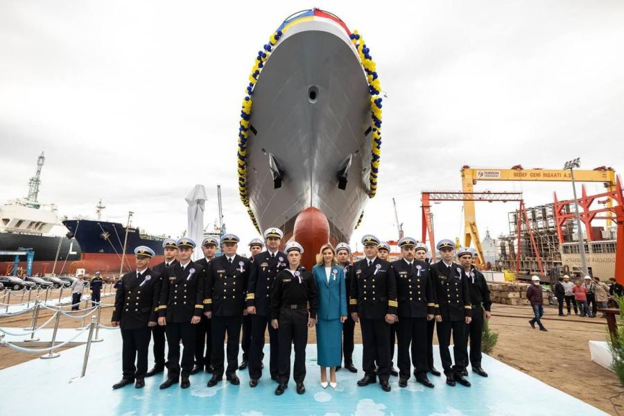 "Рада спустити на воду корвет, який служитиме Україні та водночас матиме турецьке серце", — сказала перша леді під час церемонії.