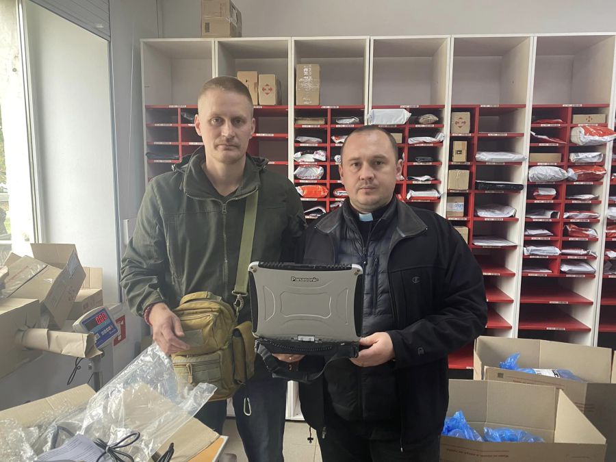 "Сьогодні до Парафії Святого Архістратига Михаїла міста Калуша завітав наш добрий приятель, захисник ЗСУ Віктор Павлів. Ми передали для захисту професійний ноутбук та комплектування до нього, яке, надіємось, збереже не одне життя! Слава Україні! Героям Слава!", — йдеться в повідомленні парафії.