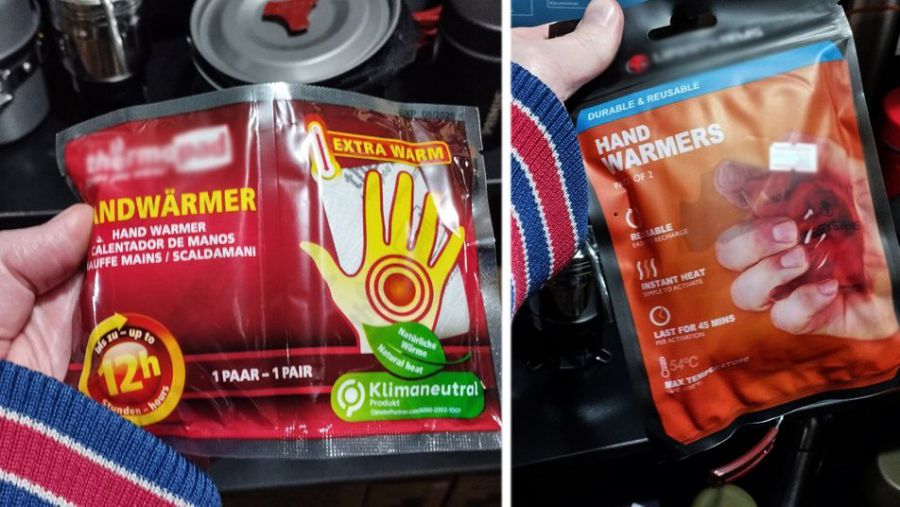 Щоб зігрітися, можна використовувати грілки. Найпримітивніша – пластикова пляшка з теплою водою. В туристичному арсеналі є також одноразові та багаторазові хімічні грілки. Одноразові, при взаємодії з повітрям, починають віддавати тепло впродовж 8-12 годин. Багаторазові діють аналогічно: всередині пакета є пластиковий елемент, натиснувши на який відбувається реакція і виділяється тепло хвилин 45. Після повторного кип’ятіння й висихання такі грілки знову готові до використання. Є ще електричні грілки, які працюють від акумулятора чи павербанка.