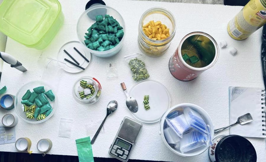 Під час проведення обшуків у помешканнях фігурантів поліцейські вилучили пластикову ємність із вмістом кристалічної речовини, яка зовні схожа на психотропну речовину «PVP». Вага близько 800 грамів. Також вилучили комп’ютерну техніку, 500 «закладок» з «амфетаміном», електронні ваги, засоби для формування «закладок», «чорнові записи» протиправної діяльності.