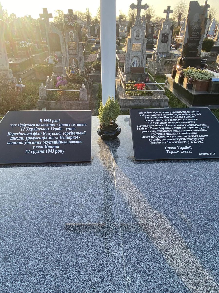 У далекому сорок третьому, майже 80 літ тому, у селі Новиця приблизно біля того місця, де зараз побудована греко-католицька церква, відбувся розстріл дванадцятьох юнаків родом із Надвірної, учнів торгівельної школи, розповіла староста Добровлянського старостинського округу Леся Красько, інформують "Вікна".