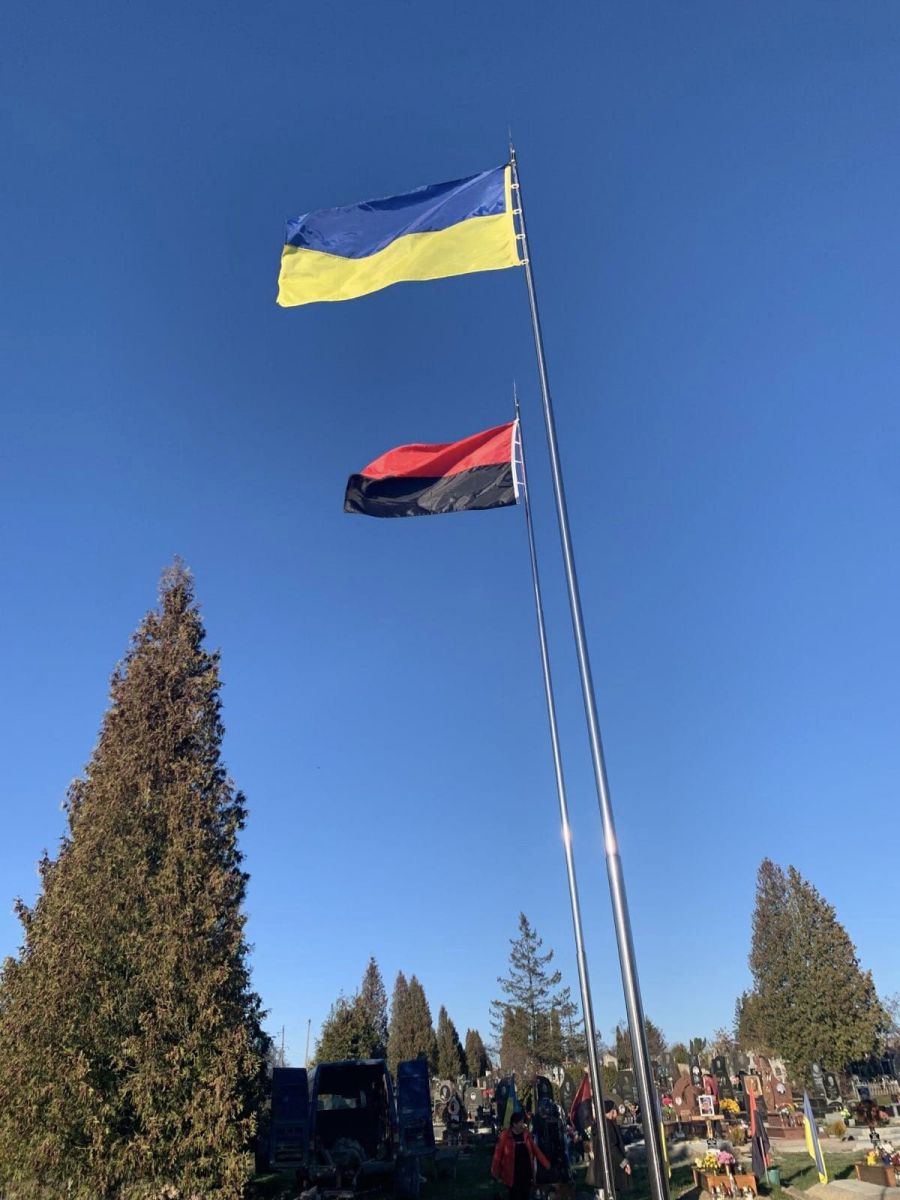 А на початку Алеї Слави, де ховаємо наших Героїв – захисників України високо замайоріли в їхню честь прапори на встановлених флагштоках.