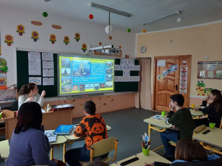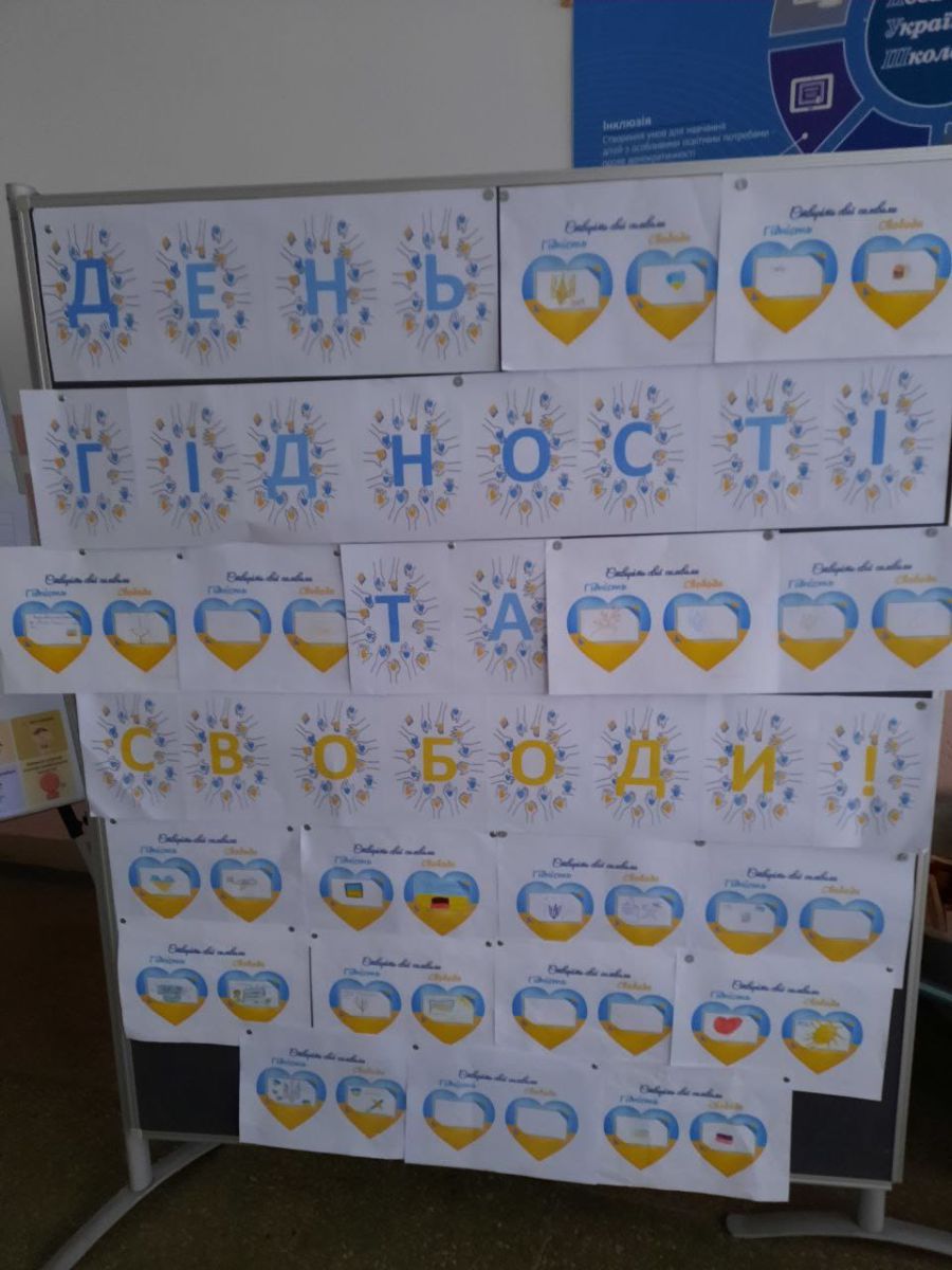 Учні 8- В класу разом з класним керівником Рабарською Н.Я. взяли участь у виховному заході педагога- організатора Рапавої Л.В. та бібліотекаря Лозіцької О.В. "День гідності та Свободи. Історія революції зблизька."