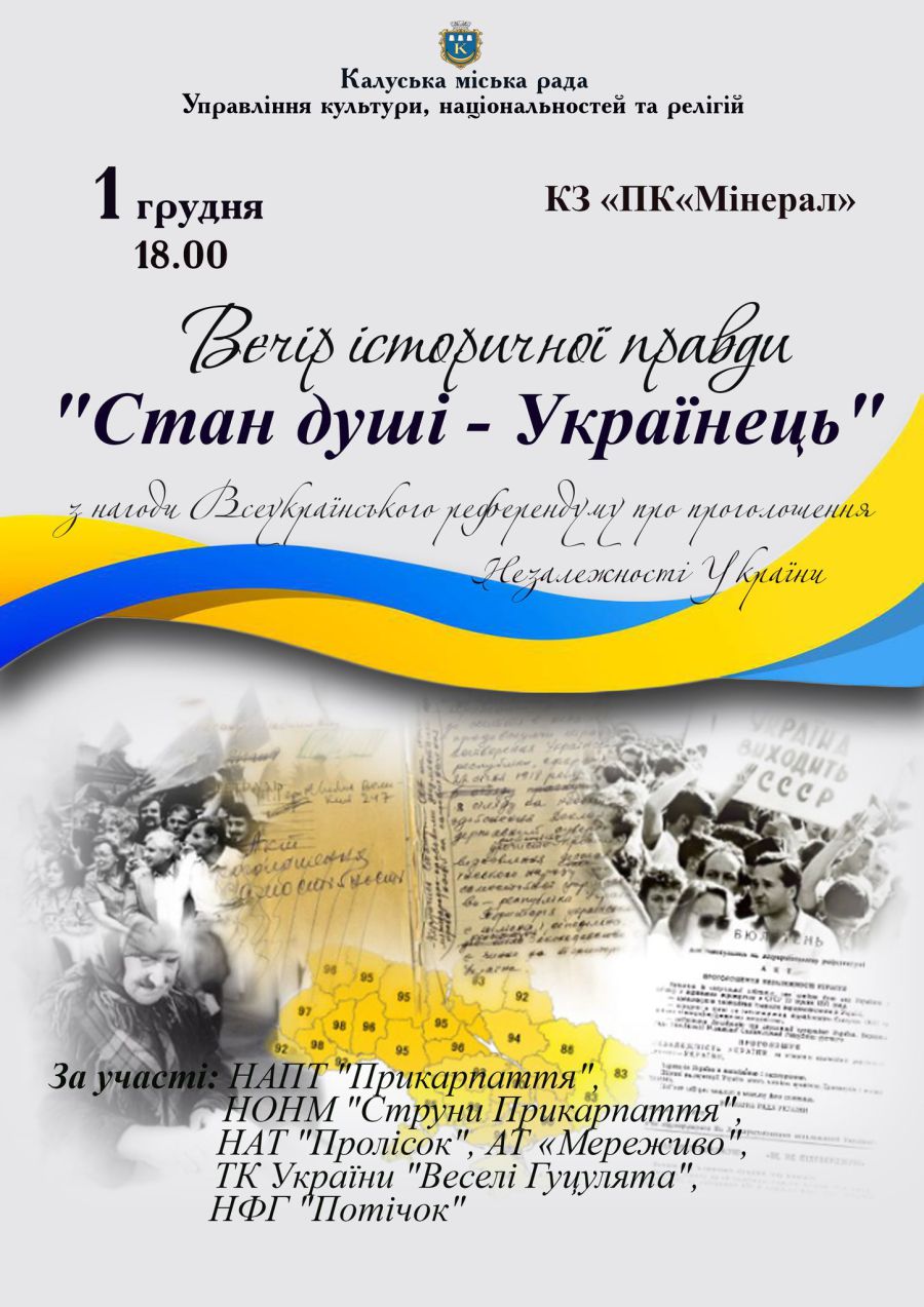 Захід відбудеться з нагоди Всеукраїнського референдуму про проголошення Незалежності України, інформують "Вікна".