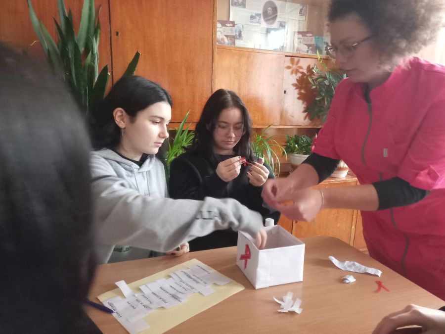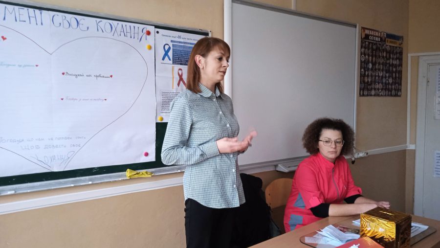 Медична сестра Тетяна Пукіш розповіла учням про шляхи передачі ВІЛ/СНІДу, симптоми хвороби.