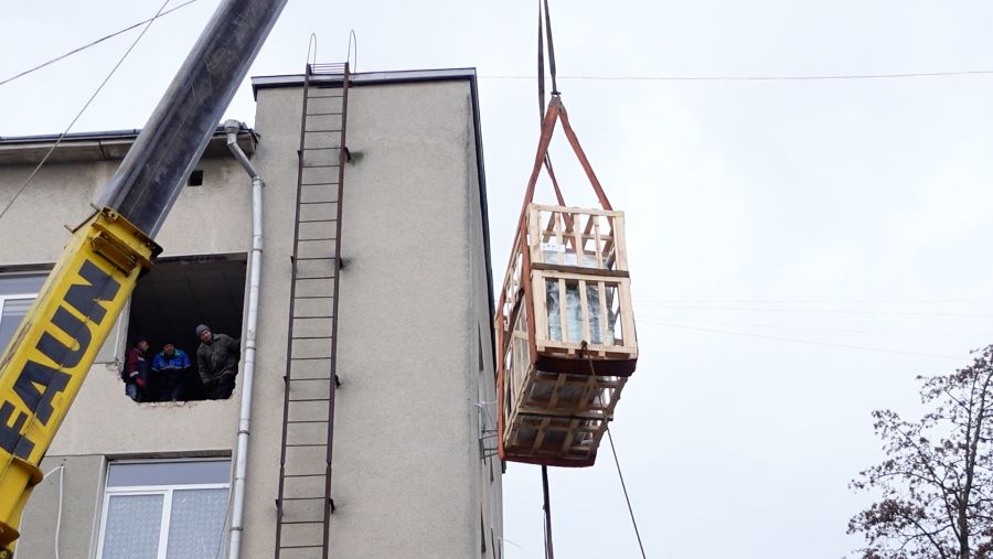 Так, доставити томограф до поліклініки виявилося завданням непростим, адже сам прилад великогабаритний. Для цього довелося скористатися послугами монтажної бригади та підйомного крана. Допомогли ТОВ «Карпатнафтохім», підприємець Сергій Барна та працівники Калуського районного відділу поліції.