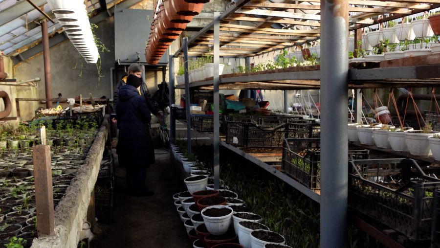 Як розповіла «Вікнам» начальниця дільниці з озеленення Анна Бігун, тепличний комплекс перебував в занедбаному стані: від теплиць були лише каркаси, а всередині росли дерева. Така ж ситуація була у підсобних приміщеннях, де, окрім всього, протікала покрівля. Комунальне підприємство одразу ж взялося за упорядкування комплексу: до зими перекрили секцію однієї з теплиць, встановили твердопаливний котел, частково поштукатурили споруди, а також викопали криницю. Тож тепличне господарство має автономне водопостачання і тепло. Виконані першочергові роботи дозволили взимку 2021/2022 років закласти та виростити квіткову розсаду.
