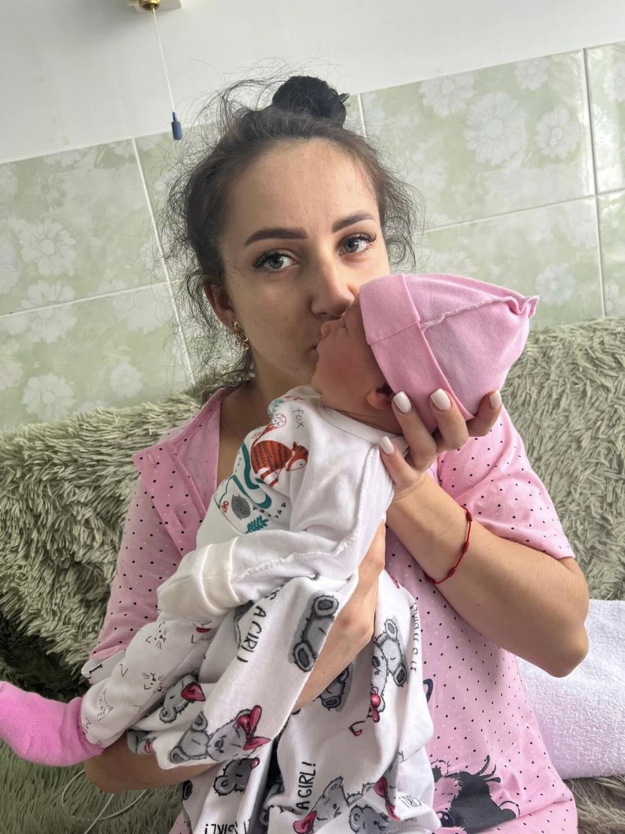 - Анжеліка Данко з села Колодіїв Галицького району — з новонародженою донечкою Домінікою;