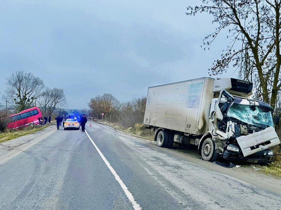Аварія сталася у Рогатинській територіальній громаді, де керманич вантажівки допустив зіткнення з автобусом. Про це повідомляє поліція Івано-Франківської області.
