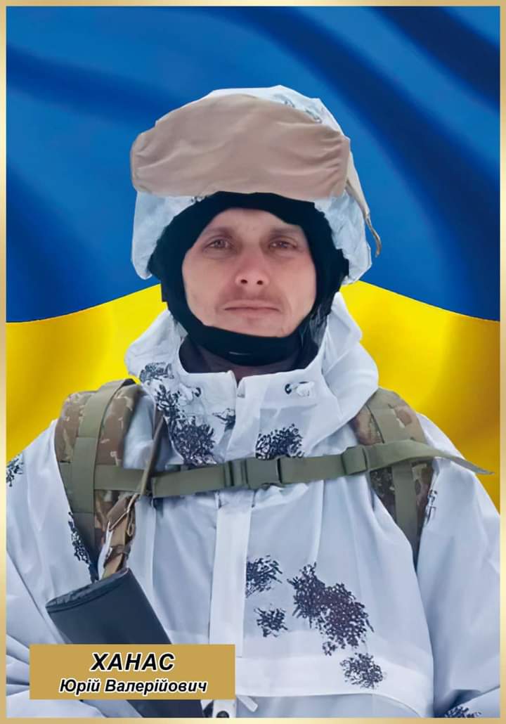 Стрілець-снайпер 7 парашутно-десантного батальйону, 35-річний Юрій Ханас народився на Івано-Франківщині, але після одруження переїхав до Здолбунова Рівненської області. Загинув 16 січня поблизу населеного пункту Червонопопівка на Луганщині. Без батька залишилось дві маленькі донечки.