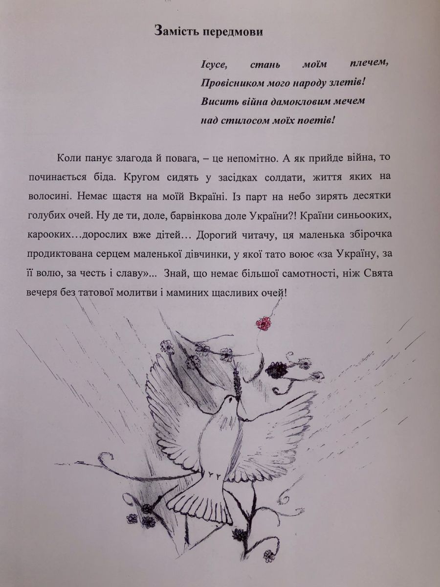 Наставницею творчої праці стала учителька української мови та літератури Олеся Жураківська. Поезії збагачені ілюстраціями авторки, Олесі Жураківської, восьмикласниці Юлії Бузович, інформують "Вікна" з посиланням на інформацію Калуського ліцею імені Дмитра Бахматюка.