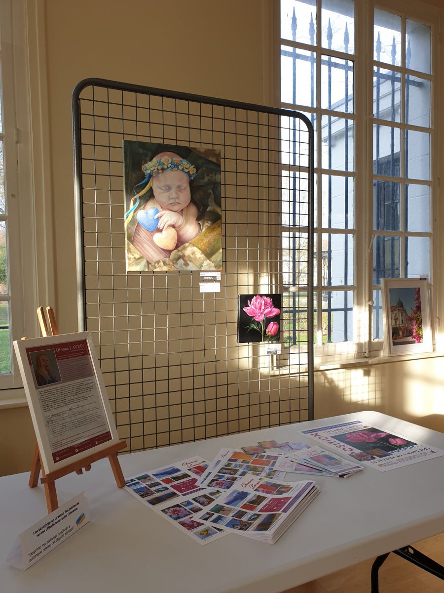 У коментарі «Вікнам» Оксана Лаврів розповіла, що до Франції прибула за 8 днів до початку повномасштабного вторгнення на запрошення взяти участь у колективній виставці. Згодом зважилася і на першу персональну. Так, побачивши портфоліо робіт, мер французького містечка Комін запросив організувати виставку в будівлі мерії. Тут Оксана Лаврів вперше презентувала не тільки картини, але й фотороботи, щоб представити Україну в деталях.