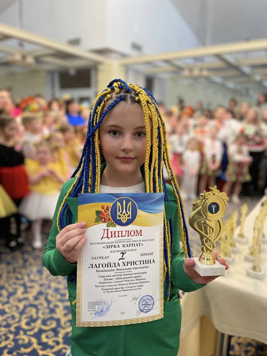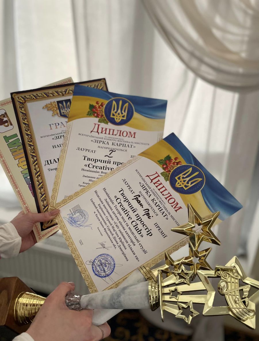 «Як же важливо у такий складний час розвивати наше покоління і давати можливість показувати своі вміння на широку аудиторію!Так наша команда вирушила на ВСЕУКРАЇНСЬКИЙ КОНКУРС- ФЕСТИВАЛЬ у м.Яремче де здобула найвищу нагороду #ГРА-ПРІ за модельну постановку та два перші місця за вокальні номери Наш «Гімн ПЕРЕМОГИ» вразив весь склад журі»