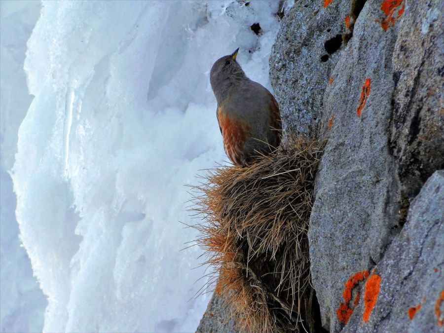 Хоча тут ще панує зима, пташина активно шукає тріщини в камяній вежі обсерваторії, щоб як і кожного року вивести потомство.